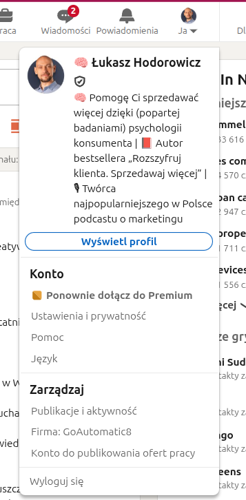 Tak, jeśli odwiedzasz czyjś profil, ta osoba może otrzymać powiadomienie. Masz jednak nad tym pełną kontrolę. W ustawieniach prywatności możesz wybrać jeden z trzech trybów przeglądania profili: Tryb publiczny: Osoba widzi Twoje imię, nazwisko, zdjęcie i stanowisko. Tryb półprywatny: Osoba widzi tylko ogólne cechy, np. „Specjalista ds. marketingu z firmy X”. Tryb prywatny: Osoba widzi tylko, że ktoś anonimowy wyświetlił jej profil. Pamiętaj, że działa to w obie strony. Jeśli przeglądasz profile w trybie prywatnym, Ty również nie będziesz widział, kto odwiedził Twój profil (chyba że masz konto Premium).