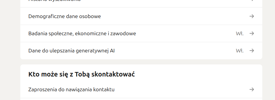 - Wyłącz zgodę na trening AI. Nawet jeśli nie chroni to danych historycznych, jest to kluczowy krok, aby ograniczyć udostępnianie informacji w przyszłości.